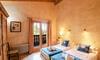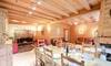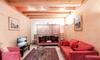 - Dnevni boravak / blagovaonica od 60 m² s kaminom i terasom (vrtni namještaj, kućno kino, DVD player i dekorativni pastirski krevet)