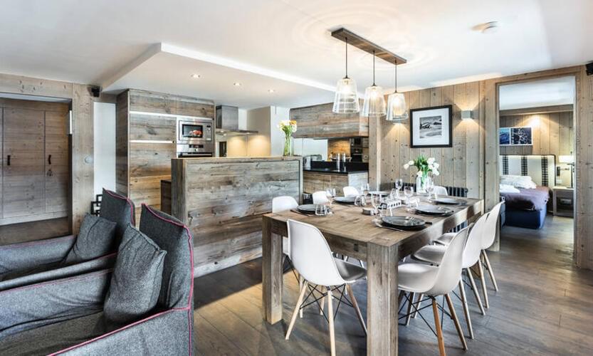 Nalazi se na drugom katu stambene zgrade u centru Val d'Isère, ovaj stan s pet soba od 95 m² može primiti 8 odraslih osoba. Blizu svih sadržaja, njegova lokacija je idealna: trgovine, turistički ured, skijaška škola, sve je dostupno pješice.